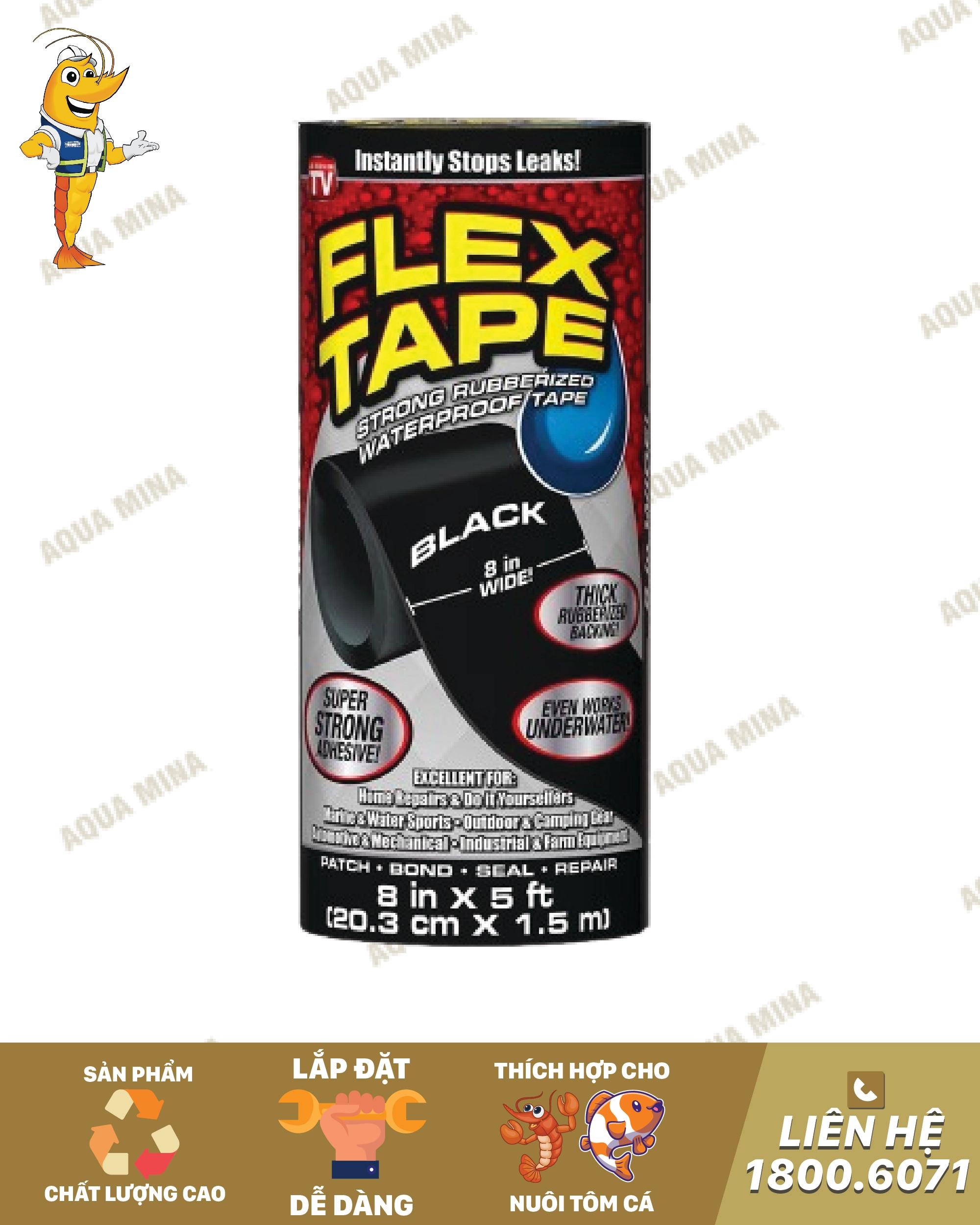Công ty Aqua Mina là nhà phân phối duy nhất tại Việt Nam hiện tại về băng keo dán bạt Flex Tape chính hãng từ Mỹ. Có chứng từ nhập khẩu rõ ràng, cam kết chất lượng sản phẩm.