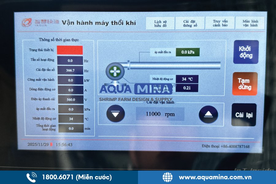 - Không chỉ tiết kiệm điện, máy còn cấp oxy ổn định và đều đặn, giúp tôm hấp thụ dinh dưỡng tốt hơn, tăng trưởng nhanh, khỏe mạnh và giảm nguy cơ bệnh tật. Thiết kế thông minh (với bảng điều khiển Tiếng Việt) dễ sử dụng cho phép bất kỳ ai cũng có thể vận hành mà không cần chuyên môn kỹ thuật cao. Bên cạnh đó, chính sách bảo hành 1 đổi 1 và dịch vụ hậu mãi tận tâm từ Aqua Mina giúp người nuôi an tâm đầu tư lâu dài, không lo gián đoạn quá trình sản xuất.