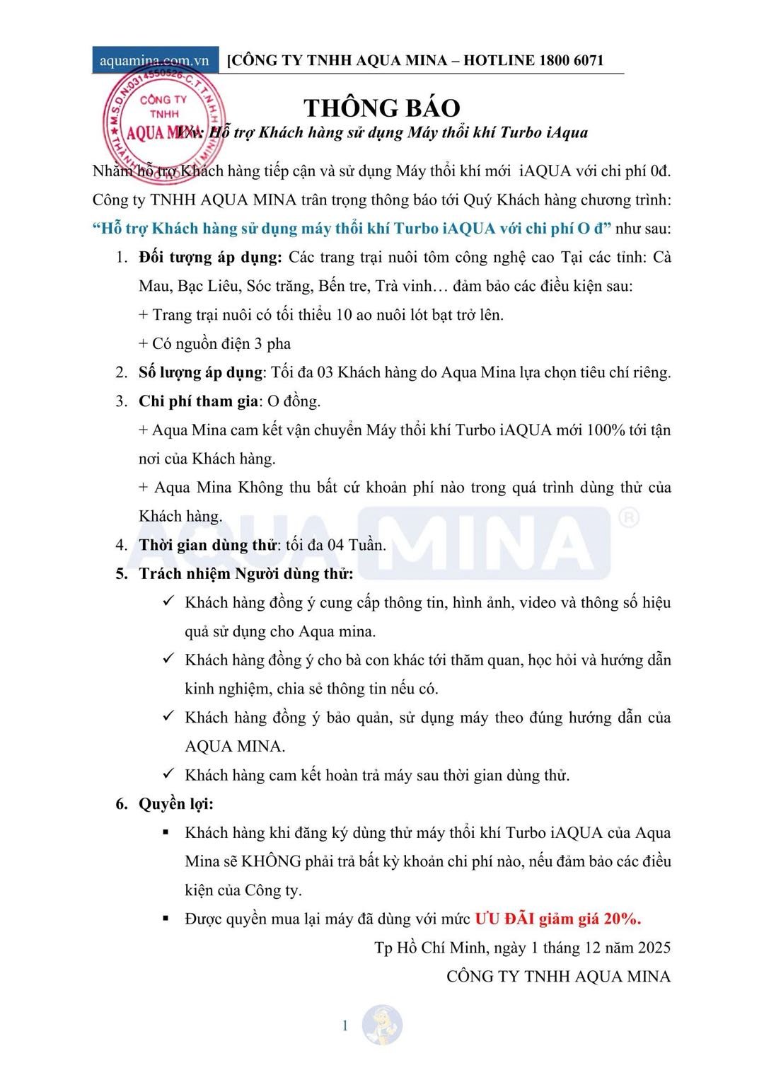5. Aqua Mina – Đơn vị phân phối độc quyền máy thổi khí turbo iAqua tại Việt Nam.