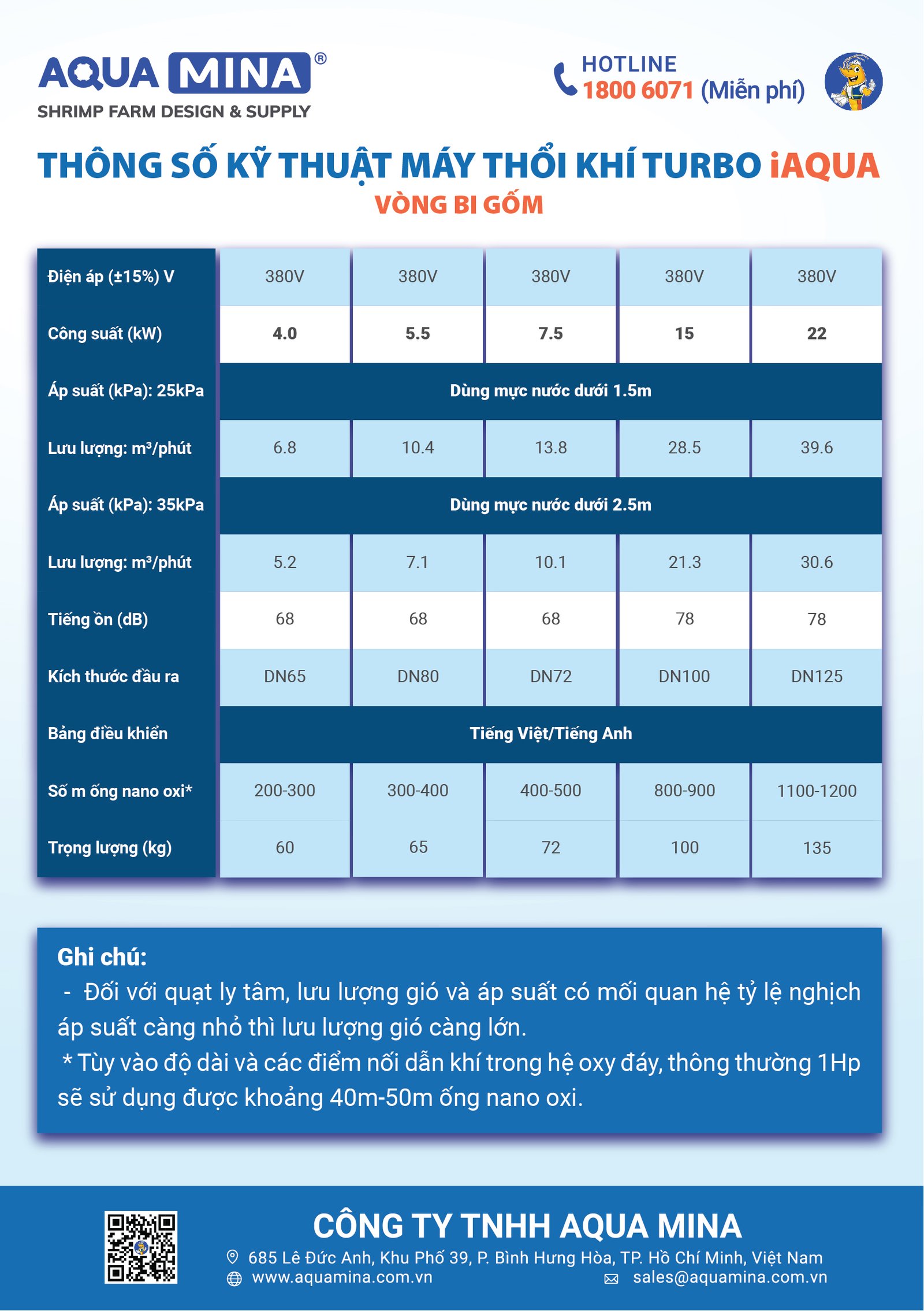 Thông Số Kỹ Thuật Máy Thổi Khí Turbo Aqua Mina